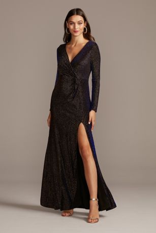 Metallic Ribbed Long Sleeve Dress David S Bridal